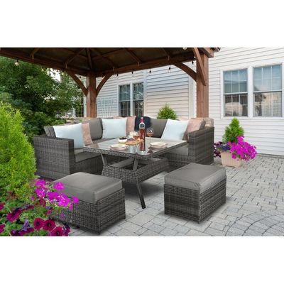 Outdoor Garden Dining Furniture Set with Bench by AJUNION Woven Rattan Corner Sofa