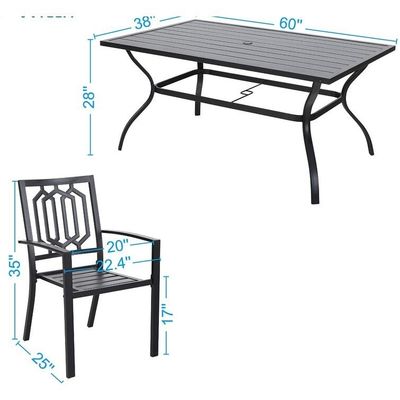 Product Dimensions | Type:Steel outdoor dining set Frame:Iron Chair Size:W57 x D63 x H89cm Table Size:L152 x D96 x H71cm |