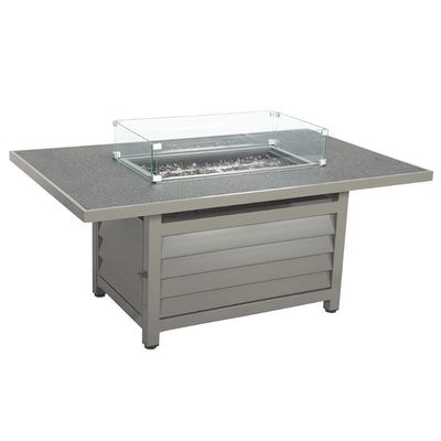 Metal AJUNION 6 Seater Outdoor Furniture with Fire Pit Table and Rope Weave Armchair