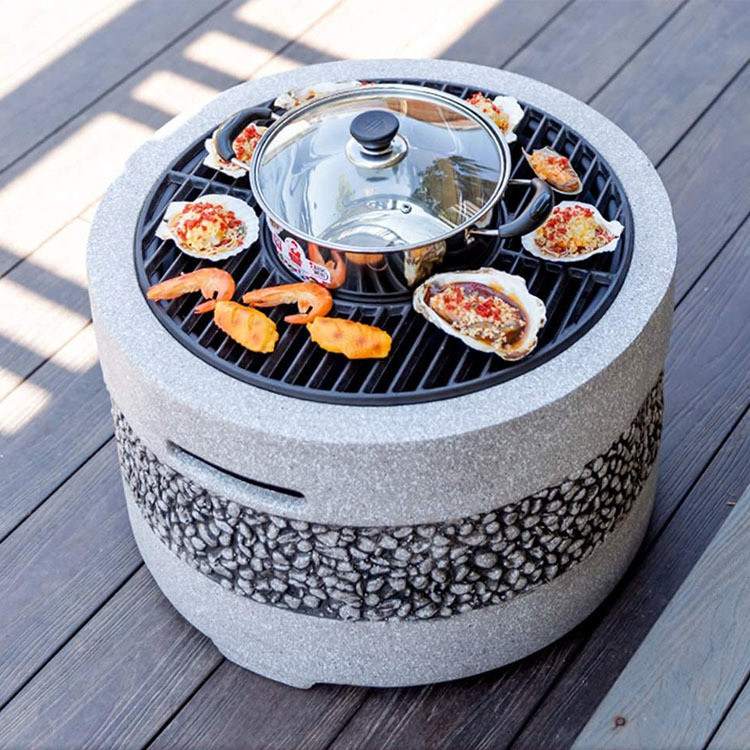 Outdoor Backyard Patio Garden Fire Pit with Artificial Stone and Charcoal BBQ Grills