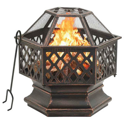 Hexagon Crossweave Steel Wood Burning Fire Pit Bowl for Outdoor Patio and Garden