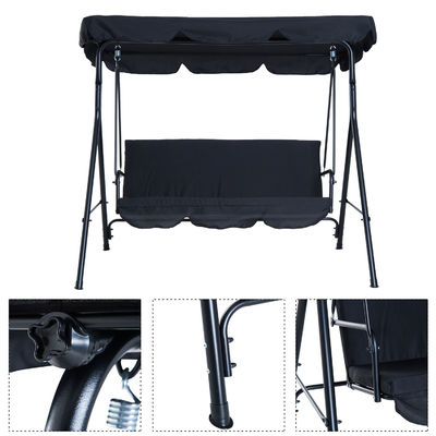 Polyester Cushion AJUNION 3-seater Garden Hanging Swing Chair with Metal and Canopy