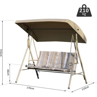 Features | Seats up to three people with ease Thick padded cushion seat Solid steel frame for strength Angle adjustable overhead canopy Anti skid feet pads Maximum weight capacity 300kg |