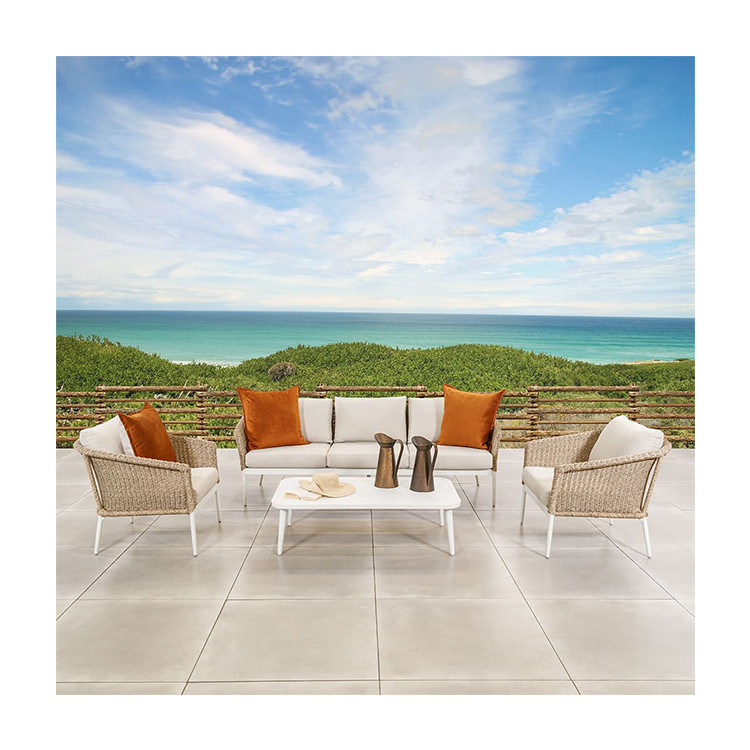 Aluminum Frame All Weather Patio Furniture Set with Rattan Weave Sofa and Coffee Table