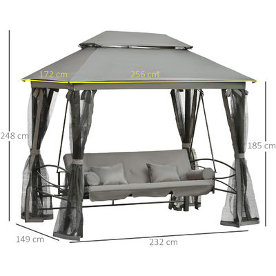 Features | * Create a ventilated space * 6 cm-thick cushions provide optimal comfort * Powder-coated steel with 660lbs weight capacity * Dual-use design * Convert from 3 seater swing chair to a single bed |