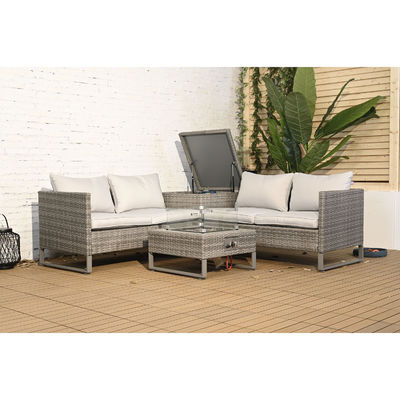 Outdoor Rattan Sectional Sofa Set with Fire Pit Table and Storage Box AJUNION 4 Seater